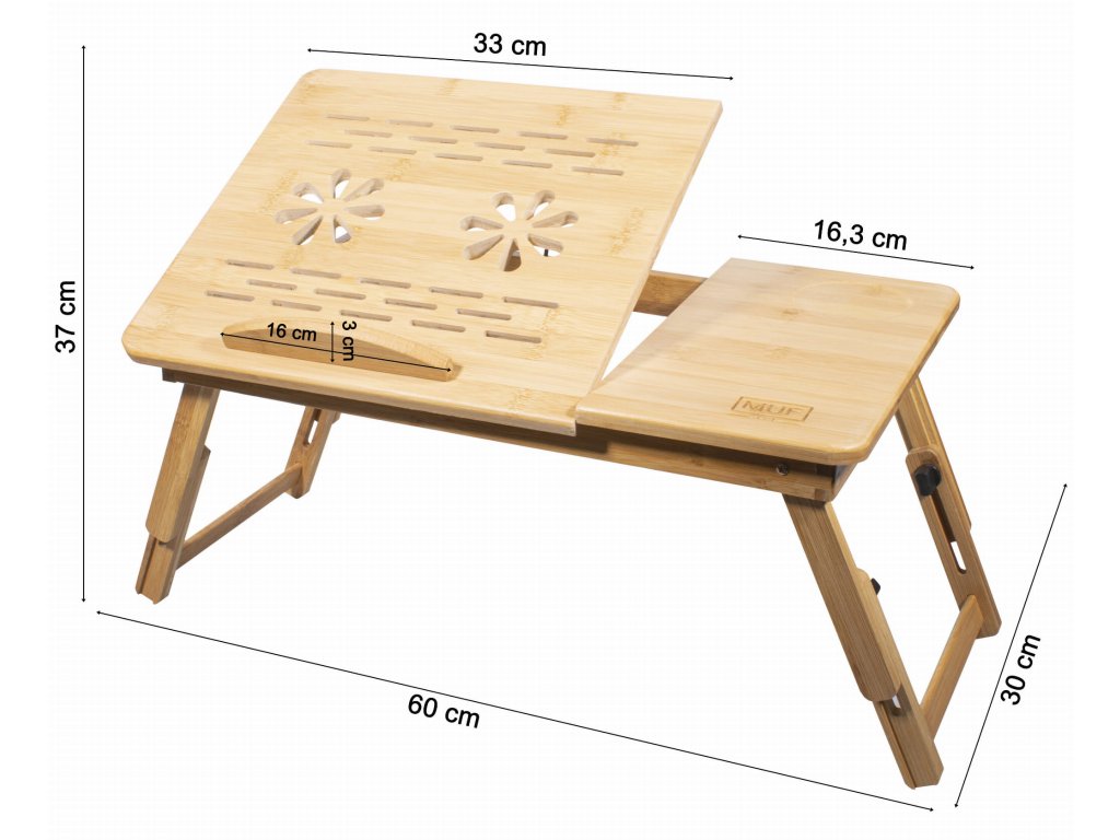 Praktický skládací stolek na notebook vyrobený z bambusového dřeva. Stolek je nejen funkční, ale také všestranný, protože jej lze použít jako snídaňový stolek. Navíc je stolek ideální na čtení knih v posteli a mohou ho používat i děti na domácí úkoly nebo kreslení.