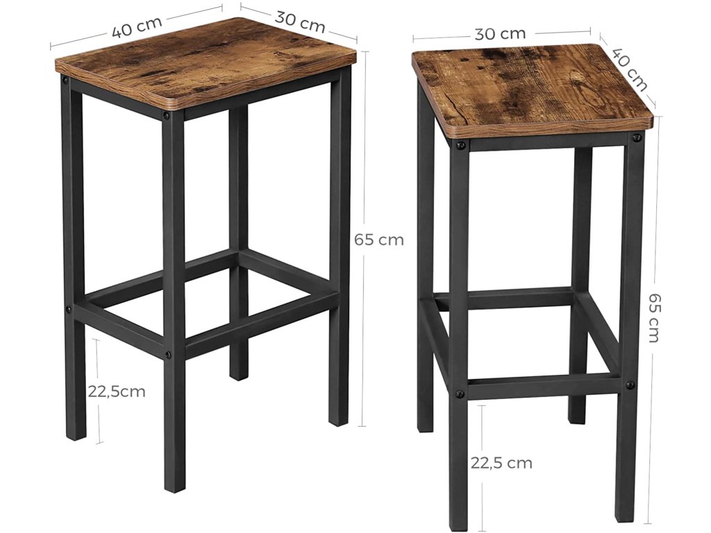 Stoličky jsou vyrobeny v rustikálním stylu, který je přiměřeně stylizován věku. Každá ze stoliček byla vybavena podnožkou, která zvyšuje komfort používání a stabilitu nábytku.