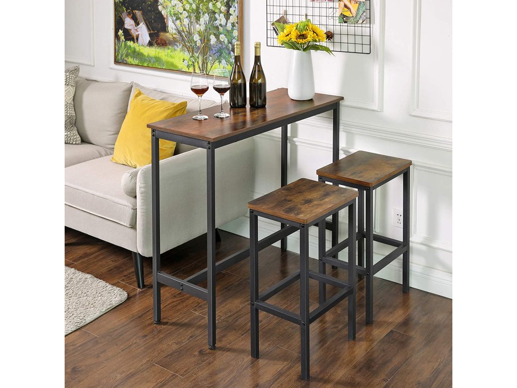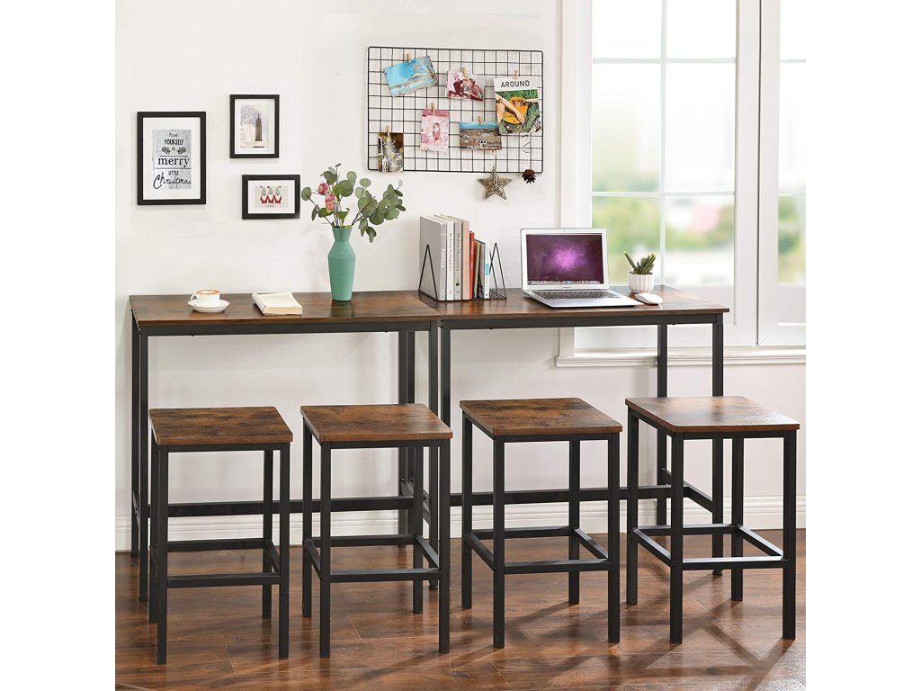 Barový stůl vyrobený v rustikálním stylu, který je přiměřeně stylizovaný věku. Vhodné rozměry stolu poskytují dostatek prostoru pro přípravu nebo konzumaci snídaně. Na stůl se snadno vejdou 4 osoby.
