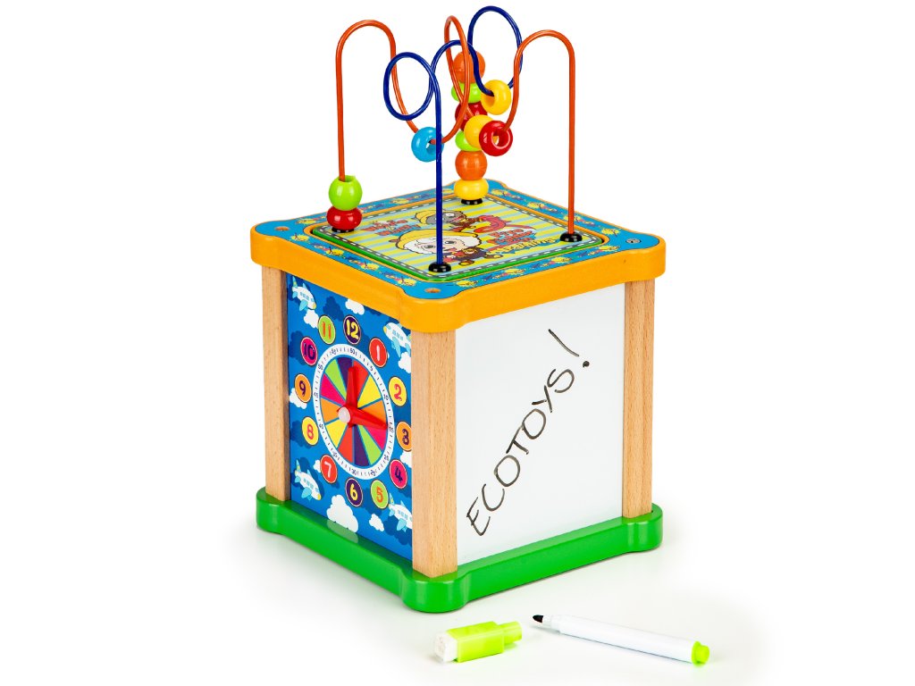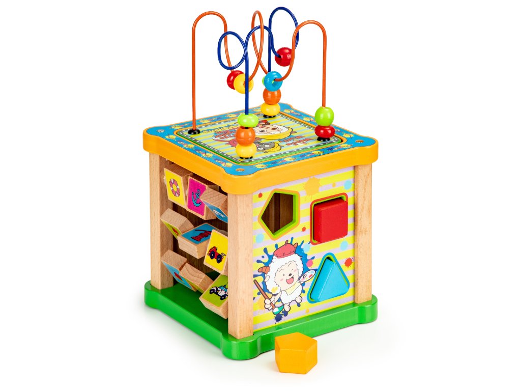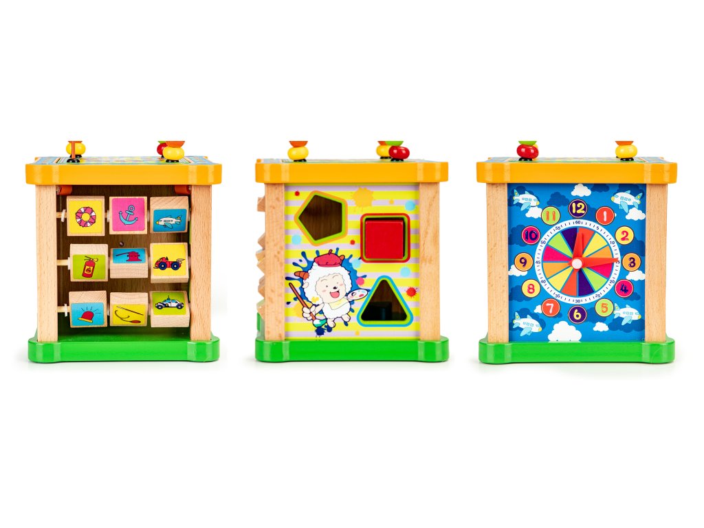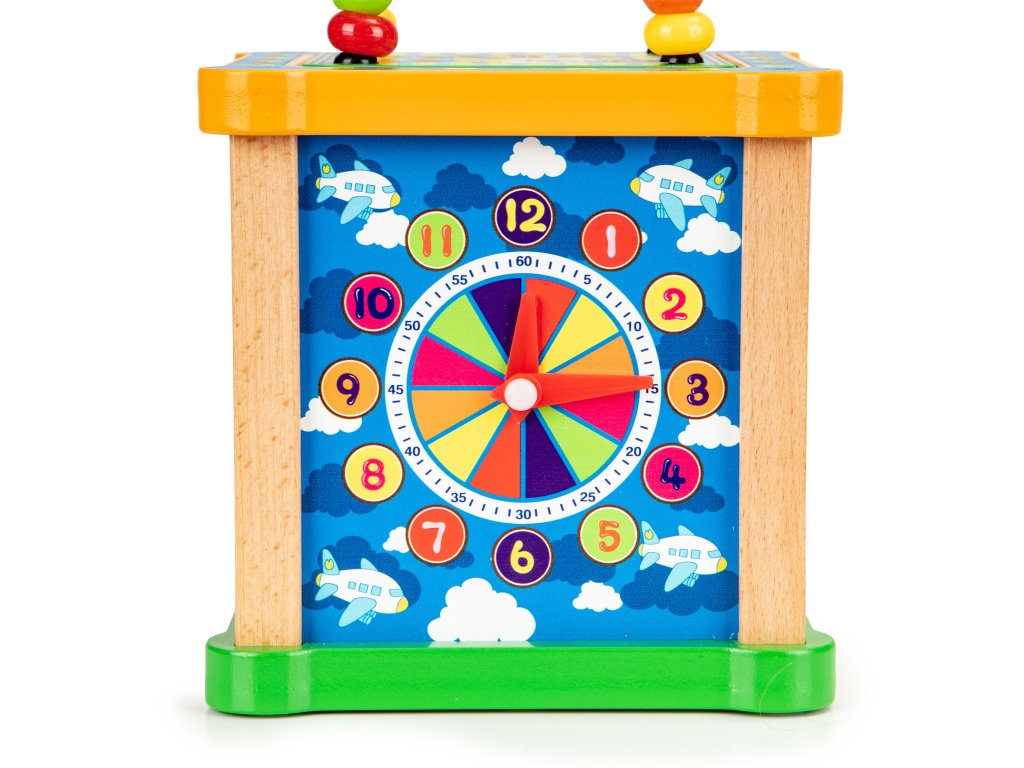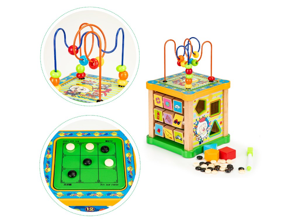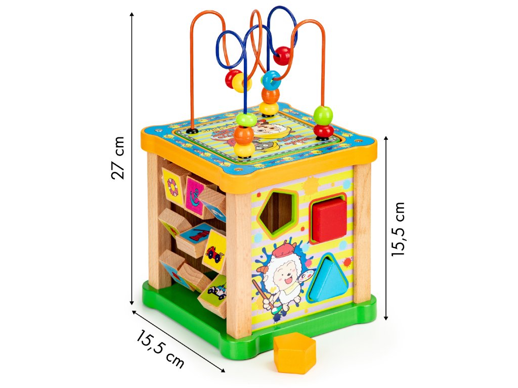 VZDĚLÁVACÍ DŘEVĚNÁ HRAČKA Pro děti od 3 let Rozvíjí manuální dovednosti Dřevěná konstrukce Mula labyrint Tabule s hodinami Třídička kostek + 3 dřevěné kostky Pohyblivé "počítadlo" s obrázky Kreslicí tabulka + fixa Tabule na hraní "tic-tac-toe" Tabule s anglickou abecedou Certifikáty: CE, EN71, SGS HRA A VÝVOJ Každý rodič si přeje, aby se jeho dítě vyvíjelo vhodným a vyváženým způsobem. Vzdělávací hračka umožní vašemu dítěti rozvoj na mnoha úrovních, a to díky konstrukci, ve které má každá stěna zcela jinou funkčnost a charakter. Naše hračka stimuluje rozvoj vašeho dítěte v rozsahu rozpoznávání tvarů, manuálních dovedností a koordinace ruka-oko. MNOHO FUNKCÍ V JEDNÉ HRAČCE Hračka je plná pohyblivých prvků, které podporují hru a rozvíjejí dovednosti batolat. Hračka naučí rozpoznávat barvy a tvary, rozvíjí motoriku a zároveň poskytne spoustu zábavy každému dítěti. V horní části se nachází odnímatelný kryt s namontovaným bludištěm a barevnými korálky, zábavou je jejich přesouvání z jednoho konce na druhý. Pod odnímatelným prokladem se nachází hrací deska s piškvorkami, sada obsahuje pěšinky ve dvou barvách. ROZMĚRY Délka: 15,5 cm Šířka: 15,5 cm Výška: 15,5 cm Výška s nasazenou mulou: 27 cm SPECIFIKACE Věková skupina: od 3 let Certifikace: CE, EN71, SGS Hmotnost: 1 kg Kód výrobku: 1: HM015473 Značka: HMH015400, výrobce: M.A.S:Doplňkové parametry