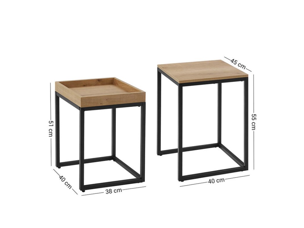 - Rozměry menšího stolu: 40 x 38 x 51 cm (šířka x hloubka x výška)