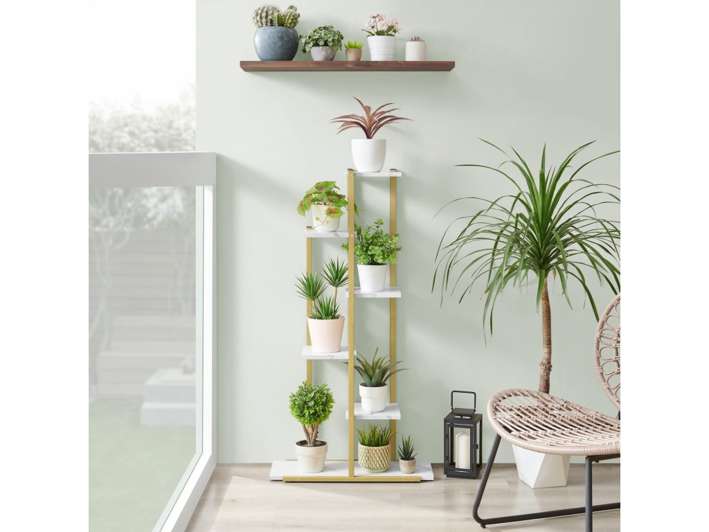 Vyrobený květinový záhonmoderní styl. Police stojanu na květiny jsoustabilníabychom na ně mohli umístit květiny ve vázách nebo jiné dekorace.