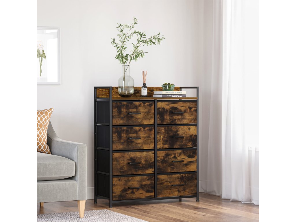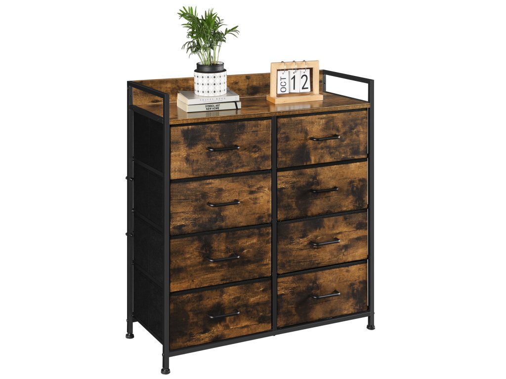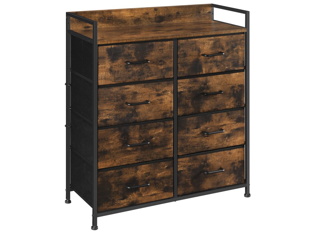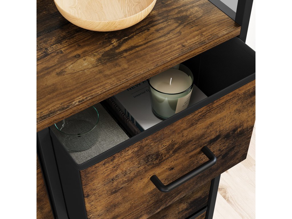 Komoda vyrobená v rustikálním stylu, tj. ve stylu odpovídajícím době. Vhodné rozměry komody poskytují dostatek prostoru pro naše oblečení. Obrovskou předností komody jsou prostorné zásuvky, které uspořádají vaše spodní prádlo, ponožky, ručníky, ložní prádlo nebo jiné věci. V horní části se jistě budou vyjímat vaše krásně zarámované fotografie. Díky své univerzálnosti a praktičnosti se tato skříň stane jedním z vašich oblíbených kusů nábytku v domácnosti. Nábytek v loftovém stylu je nejnovějším módním trendem. Skříň jistě zapadne do interiéru mnoha místností. Kovová konstrukce zajišťuje stabilitu nábytku. Dokonale sladěné prvky a rustikální zasazení komody dodají vašemu interiéru šarm. Postarejte se o estetiku svého obývacího pokoje, ložnice nebo pokoje výběrem osvědčených výrobků nejvyšší kvality.