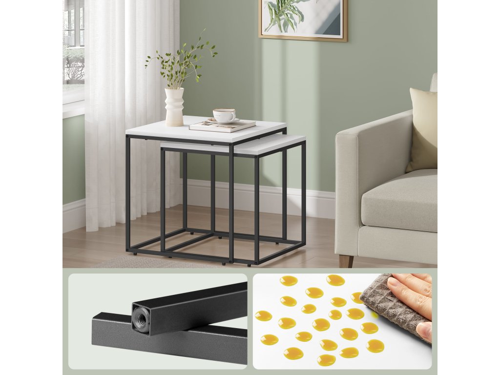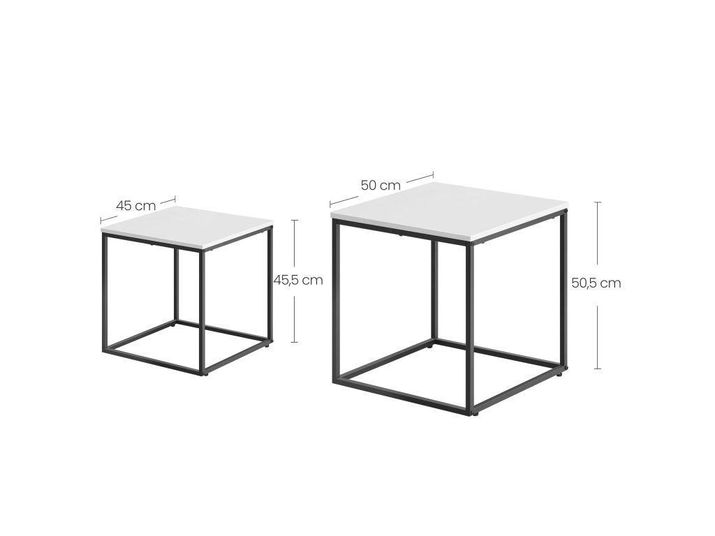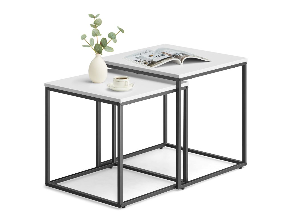 Konferenční stolek čtvercový 2ks - bílý / černé nohy