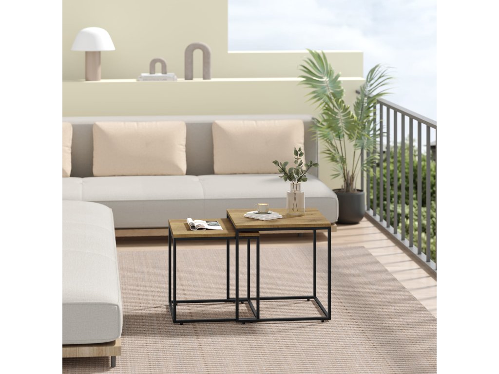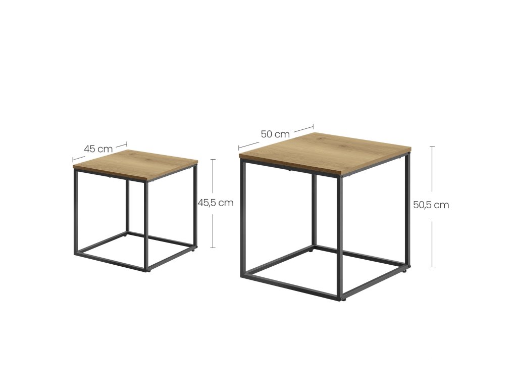 Konferenční stolek čtvercový 2ks - dub / černé nohy