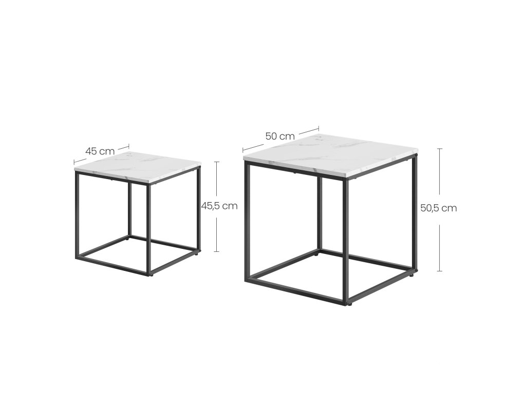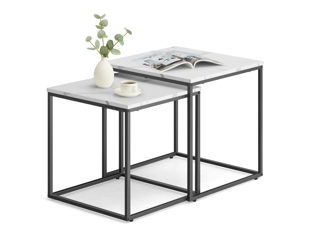Konferenční stolek čtvercový 2ks - mramor / černé nohy