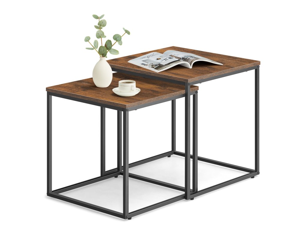 Konferenční stolek čtvercový 2ks - rustikální / černé nohy