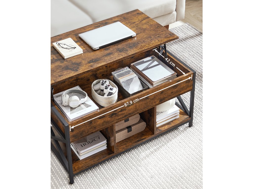 Stůl je vyroben v rustikálním stylu, který je přiměřený věku. Vhodné rozměry lavice poskytují dostatek prostoru pro šálky s kávou, notebook, dálkové ovládání televizoru a podnos na svačinu.