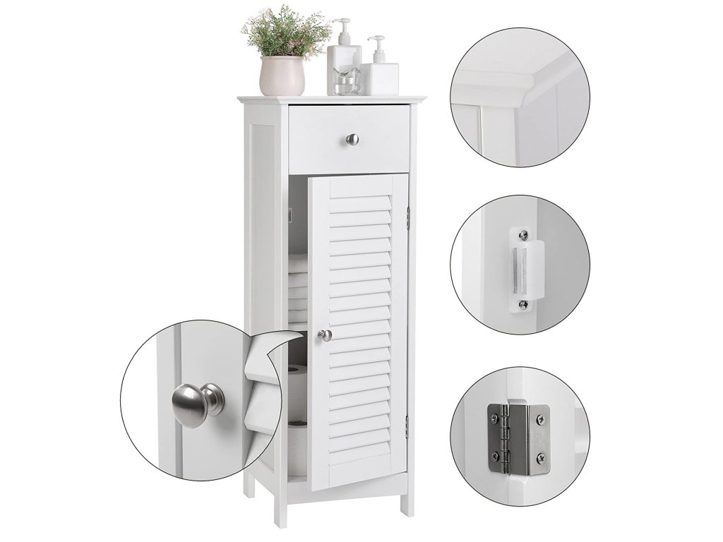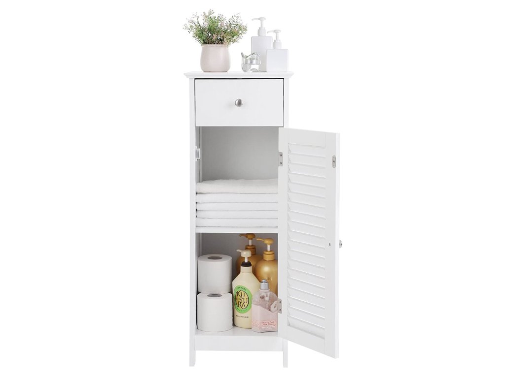 Sloupová skříňka v neutrální barvě uspokojí mnoho kupujících. S touto štíhlou skříňkou si můžete uspořádat prostor v koupelně. Díky 2 policím a zásuvce si můžete uspořádat ručníky, kosmetiku nebo koupelnové doplňky. Navíc můžete v uzavřených prostorech uschovat věci, které nechcete mít na očích, například zásobu toaletního papíru.