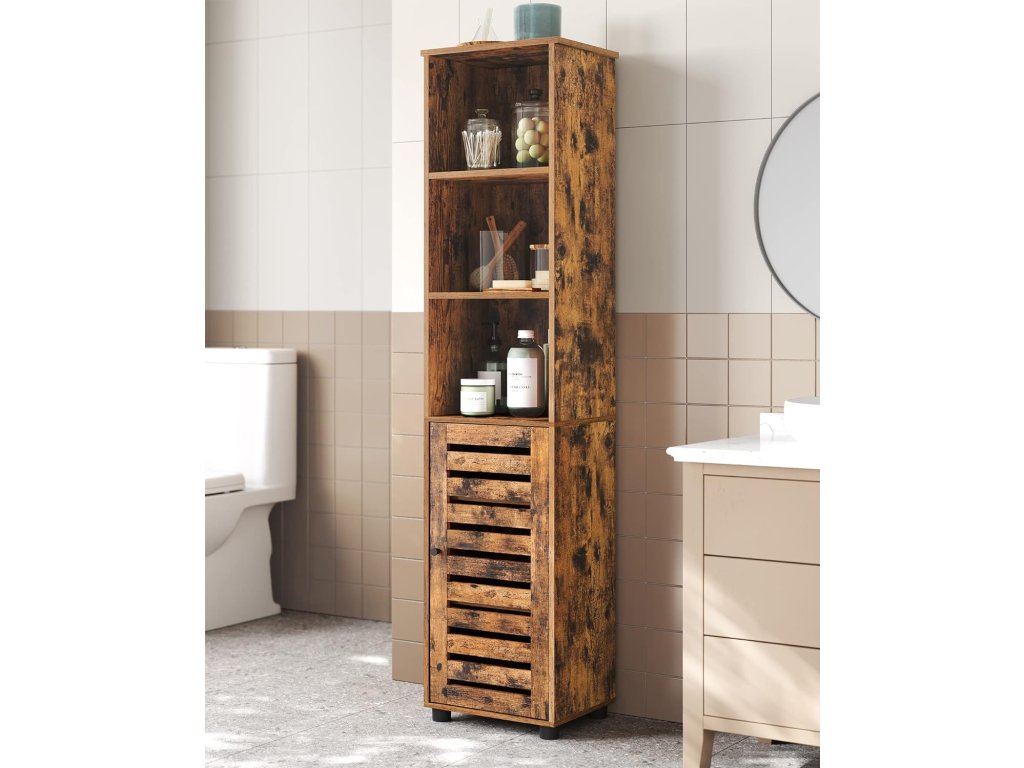 Skříňka je vyrobena v rustikálním stylu, tedy přiměřeně svému věku. Police skříňky jsou stabilní, takže na ně můžeme umístit tekutiny, kosmetiku, ručníky, parfémy a další koupelnové doplňky. V uzavřených prostorech navíc můžete uschovat věci, které nechcete mít na očích, jako je například zásoba toaletního papíru.