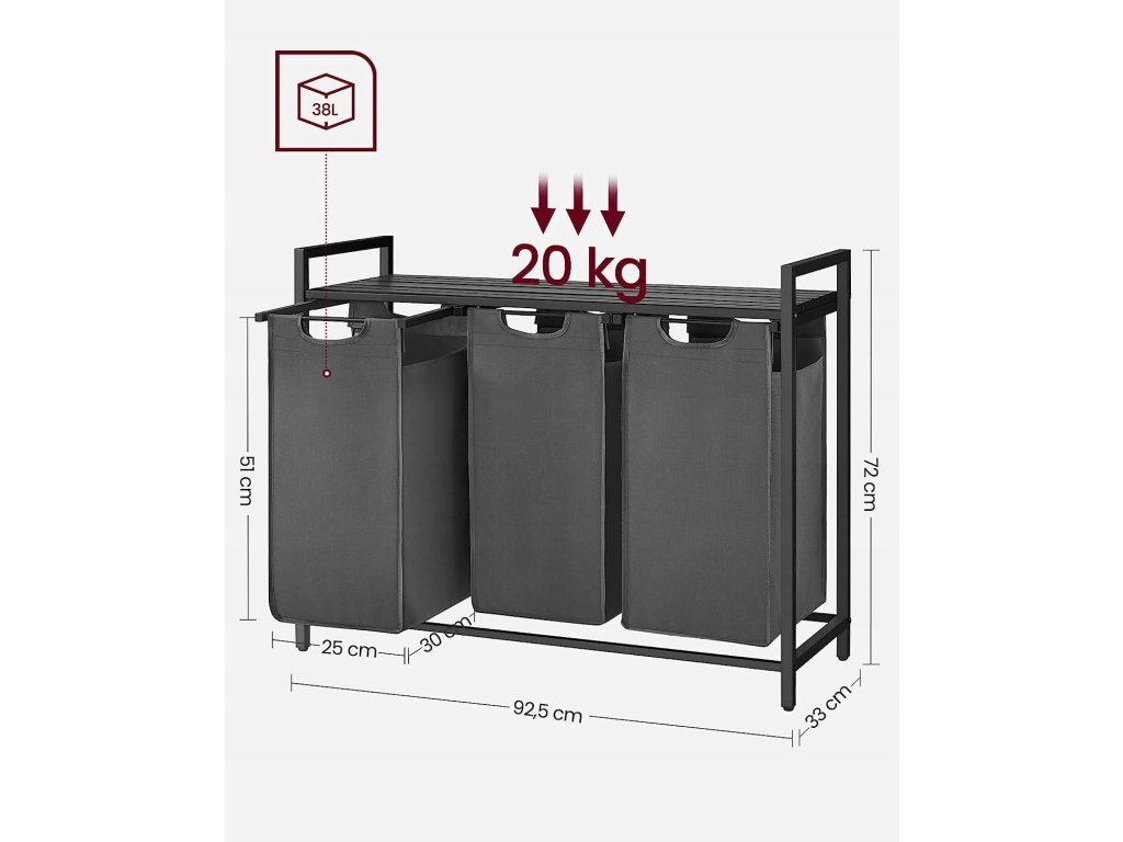 KOŠ NA PRÁDLO, KOŠ NA PRÁDLO, KOŠ NA RUČNÍKY,Šedá, 3 přihrádky, 3x 38L