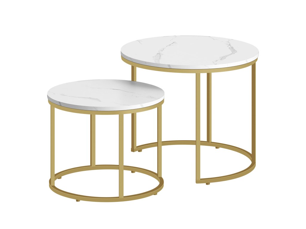 Kulatý konferenční stolek 2ks - mramor / zlaté nohy