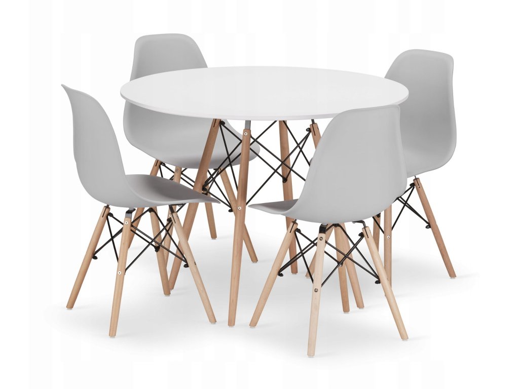 Kulatý stůl TODI 100 bílý + 4 židle OSAKA šedá