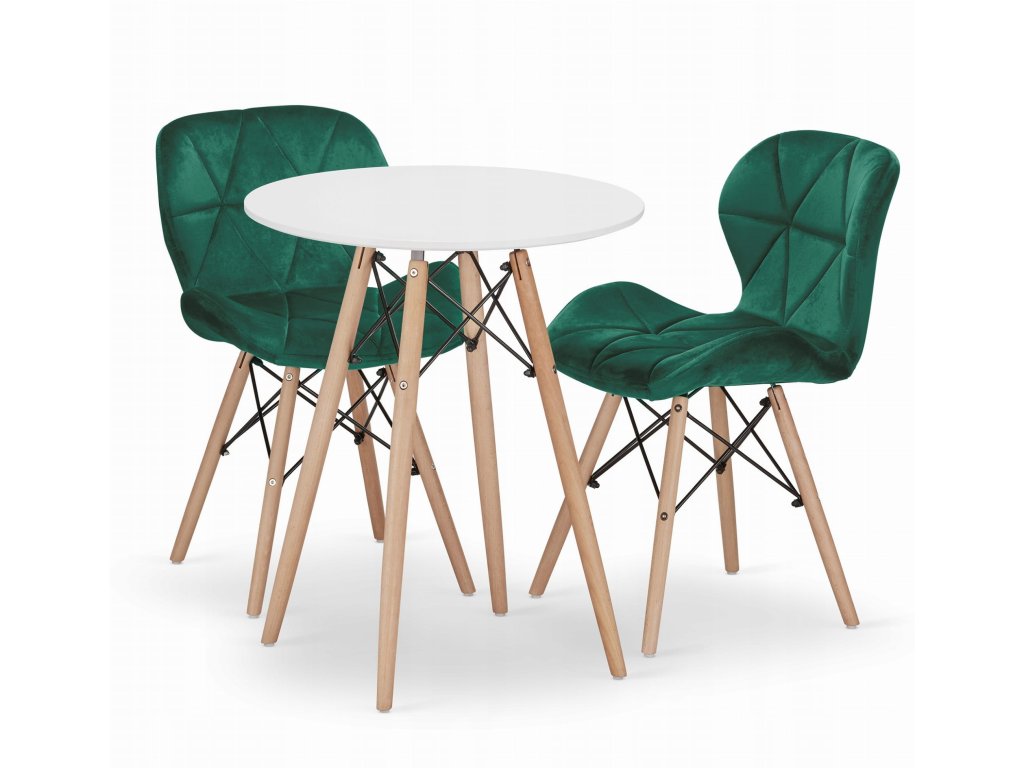 Kulatý stůl TODI 60 bílý + 2 židle LAGO zelená