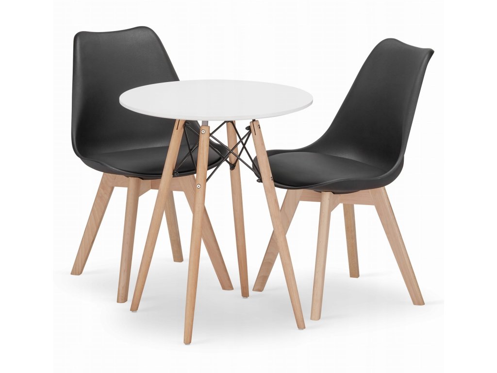 Kulatý stůl TODI 60 cm bílý + 2 židle MARK černé barvy