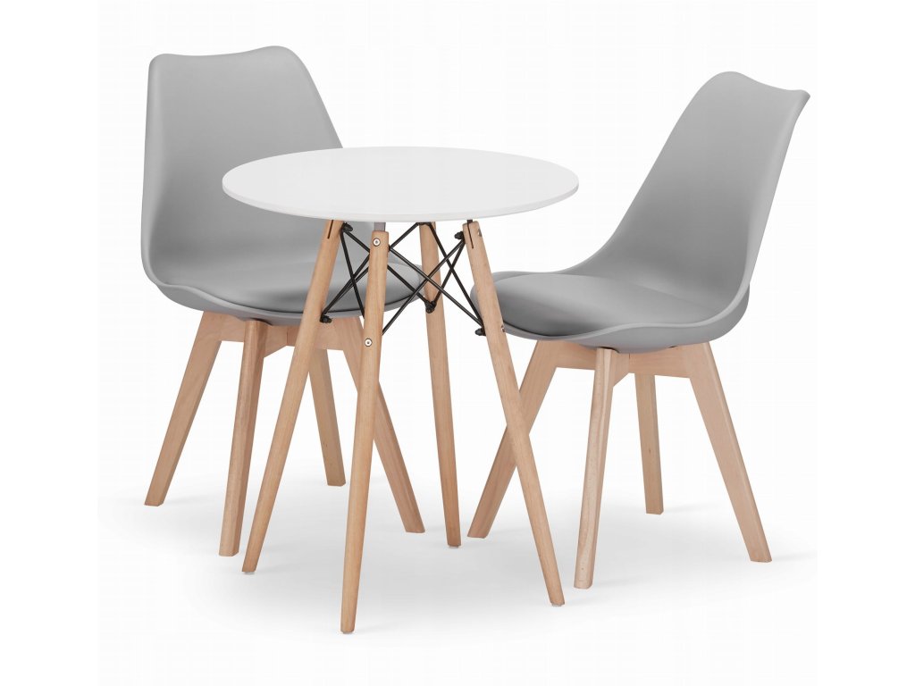 Sadakulatý stůl TODI 60 cm bílý + 2 židle MARK šedé: