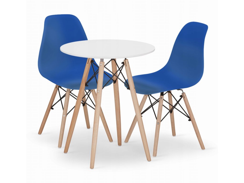 Sadakulatý stůl TODI 60 cm bílý + 2 židle OSAKA modrá: