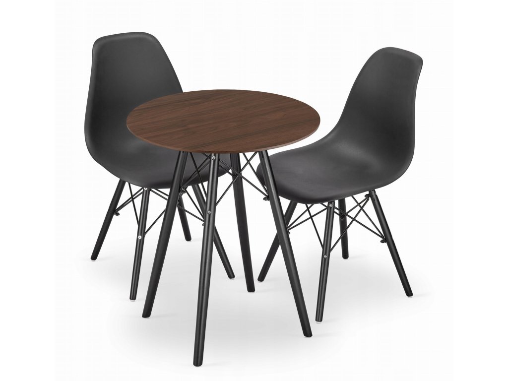 Sadakulatý stůl TODI 60 jasan + 2 židle OSAKA černá: