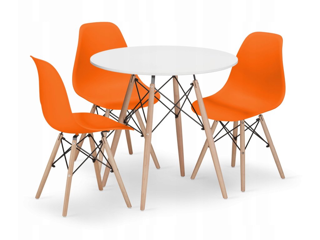 Kulatý stůl TODI 80 bílý + 3 židle OSAKA oranžová