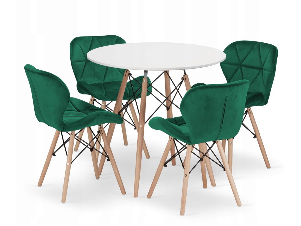 Kulatý stůl TODI 80 bílý + 4 židle LAGO zelený