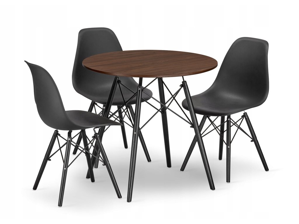 Kulatý stůl TODI 80 jasan + 3 židle OSAKA černá