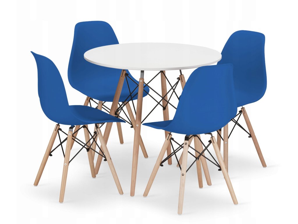 Kulatý stůl TODI 80cm bílý + 4 židle OSAKA modrá