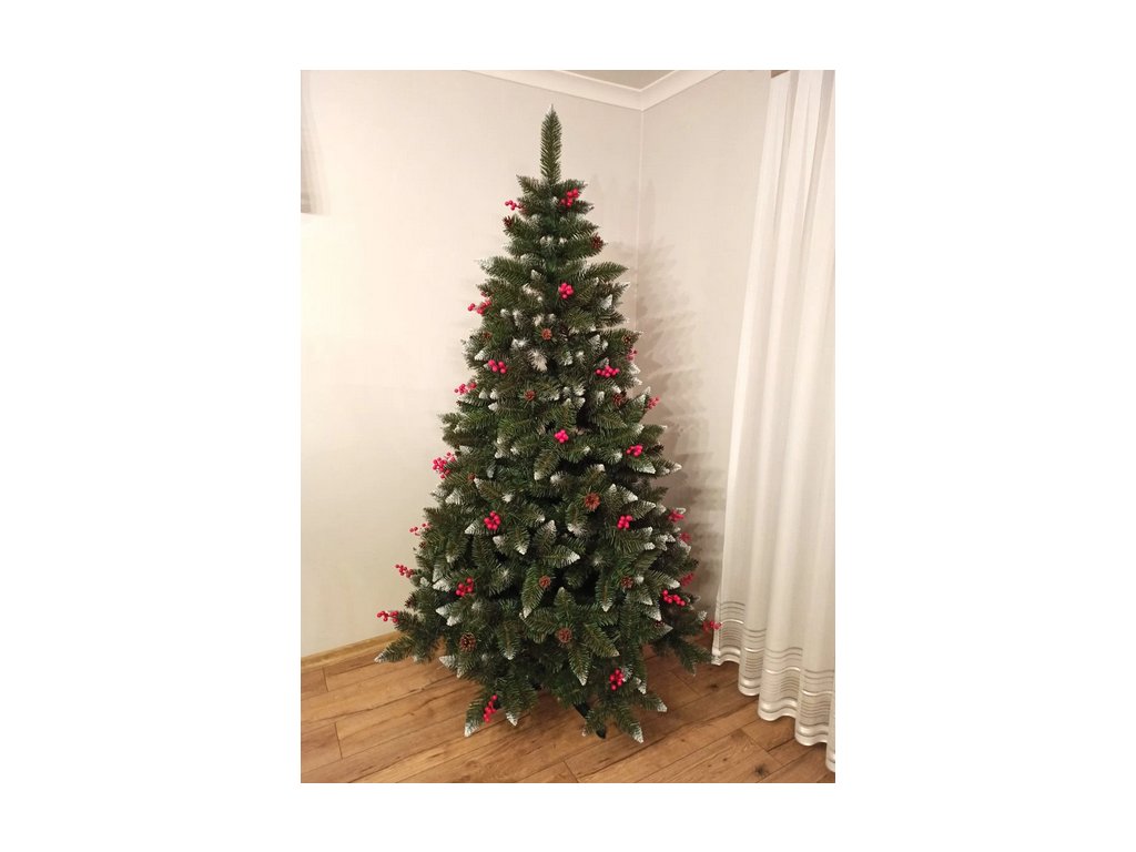 Moderní vánoční stromek - BOROVICA diamant 220cm s jeřabinami