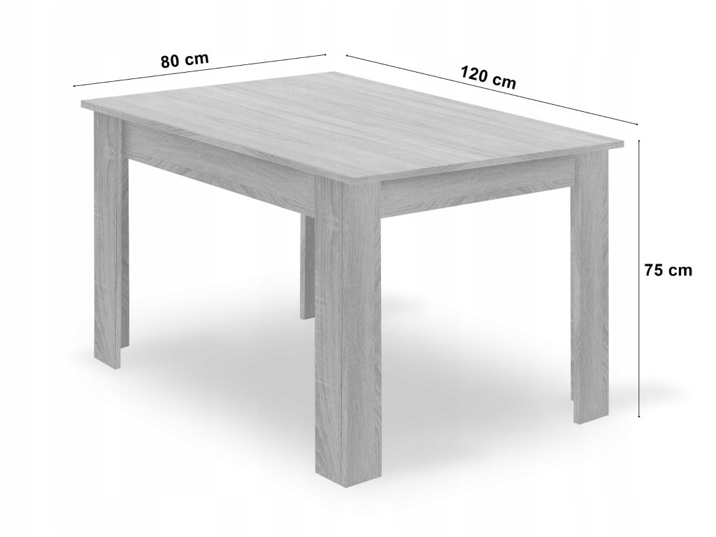 Obdélníková stolová sestava 120x80 dub sonoma + 4 židle MARK šedá: