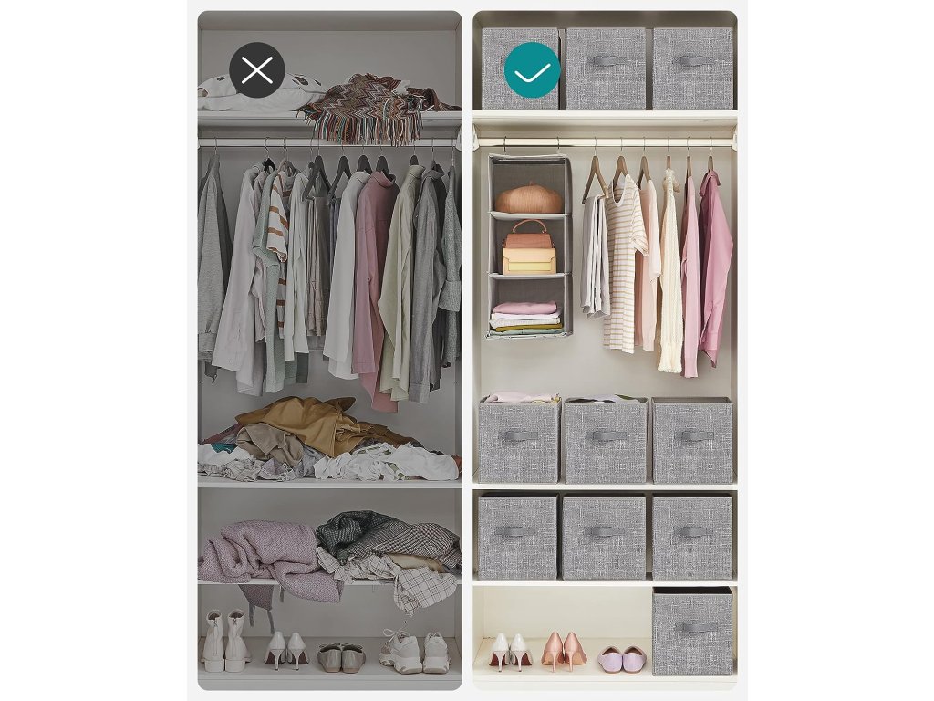 S tímto produktem budou všechny naše věci, jako jsou ručníky, šály, halenky, ponožky nebo jiné kusy oblečení, na jednom místě. Otevřená okénka nám umožňují kontrolovat obsah organizéru a pomáhají nám identifikovat položky umístěné uvnitř.