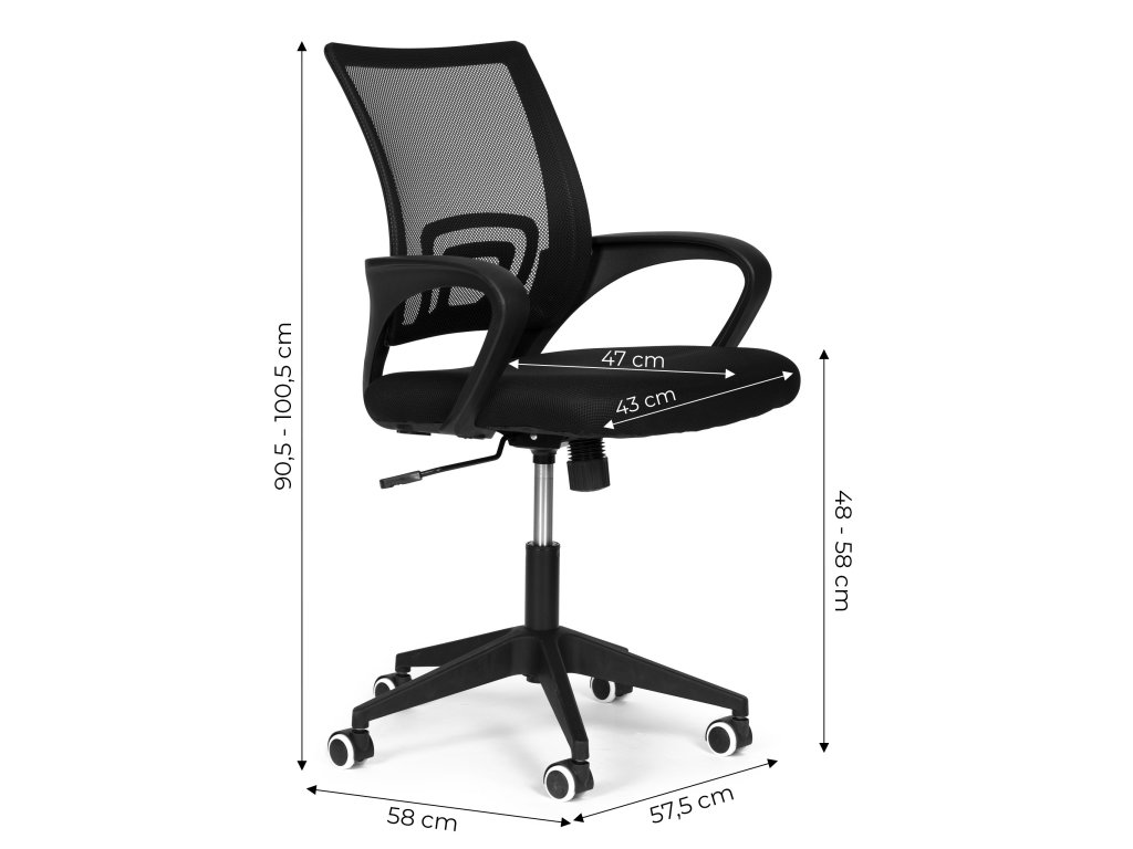 PŘIZPŮSOBENÁ KANCELÁŘSKÁ ŽIDLE Ideální pro každou kancelář i domácnost Síťované opěradlo pro větrání Ergonomický tvar opěradla Bederní opěrka Kolečka z odolného plastu (nepoškozují podlahu) Pohodlné područky Hydraulický pohon - výškově nastavitelný Značkový výrobek: POHODLÍ A ERGONOMIE Díky své konstrukci a ergonomii je vynikající volbou pro každého, kdo si cení pohodlí při práci. Speciálně profilované prvky židle, jako je opěradlo nebo područky , vám dají zapomenout na bolesti zad po celém dni práce. Díky jednoduchému ovládání nastavovacích mechanismů je židle uživatelsky přívětivá a vhodná do každé kanceláře či domácnosti. POHODLÍ A BEZPEČNOST Sedadlo židle bylo navrženo tak, aby se používalo co nejpohodlněji. Je mimořádně pohodlné a měkké, takže ani dlouhé hodiny práce nebo odpočinku nebudou únavné . Látkový potah sedáku je nejen esteticky provedený, ale také trvanlivý a odolný proti oděru . Díky tomu si sedadlo zachová svůj atraktivní vzhled po dlouhou dobu. Pro zvýšení funkčnosti má židle možnost aretace opěradla v různých polohách, což umožňuje jeho nastavení podle individuálních preferencí a potřeb uživatele. DOBŘE NAVRŽENÉ Pod sedákem židle je páčka, která umožňuje nastavit výšku sedáku a zablokovat možnost houpání. Pouhý jeden pohyb stačí k nastavení pohodlné polohy sezení nebo k využití relaxační funkce "houpání". Hned vedle páčky se nachází knoflík pro nastavení úhlu sklonu, díky němuž můžete nastavit maximální rozsah "houpání". Kolečka židle jsou vyrobena z plastu a jsou navržena tak, aby chránila povrch podlahy před poškrábáním a jiným poškozením. Díky použití vysoce kvalitních materiálů jsou tato kolečka nejen odolná, ale také zajišťují plynulý a tichý pohyb židle. ROZMĚRY: Hloubka: 58 cm Šířka: 57,5 cm Výška: 90,5 - 100,5 cm NASTAVITELNÁ VÝŠKA SEDADLA OD ZEMĚ: nejnižší: nejnižší výška: 48 cm nejvyšší: 58 cm SEDADLO: Hloubka: 47 cm Šířka: 43 cm SPECIFIKACE: Černá barva Hmotnost: 10,1 kg Rozměry balení: rozměry: 58x56x29 cm Nastavitelná výška: ano Výrobce:Doplňkové parametry