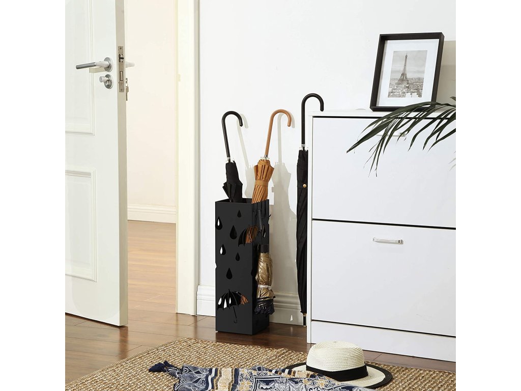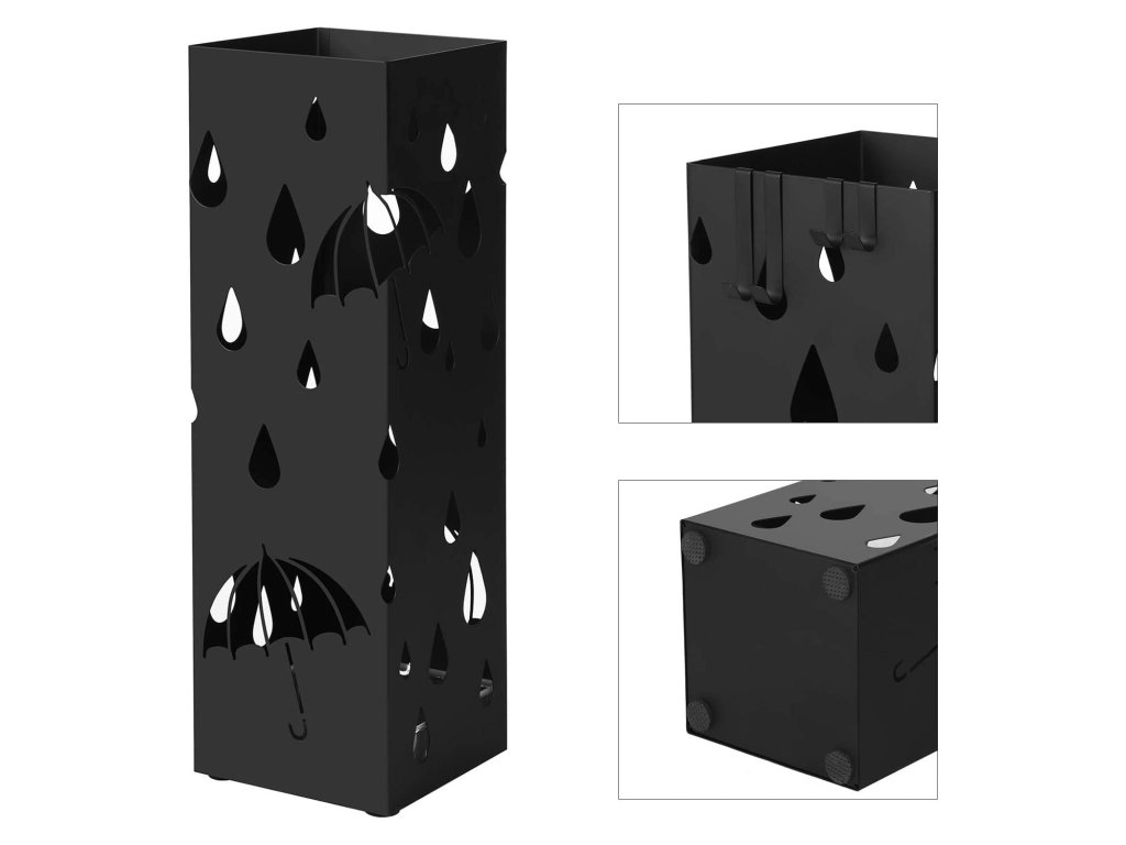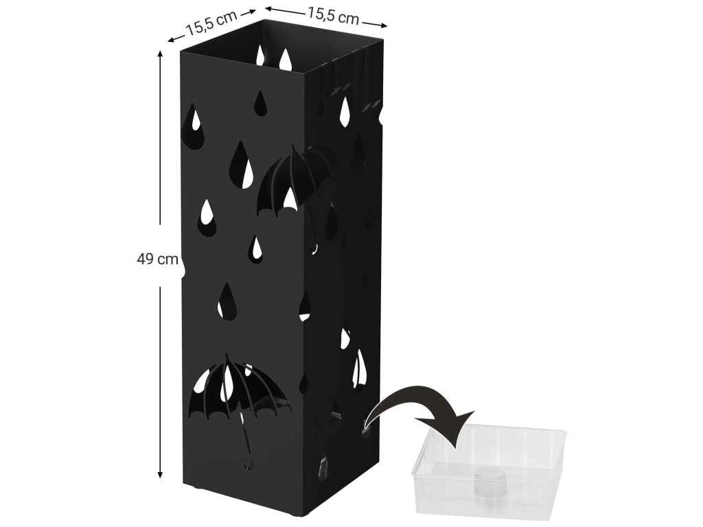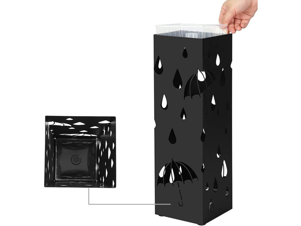 Stojan na deštníky je vybaven odnímatelnou plastovou vaničkou na vodu, která chrání podlahu před vlhkostí. Už nemusíte sušit rozložený deštník na dlaždicích, jednoduše umístěte mokrý deštník dovnitř stojanu a veškerá voda odteče přímo do odtokové vaničky.