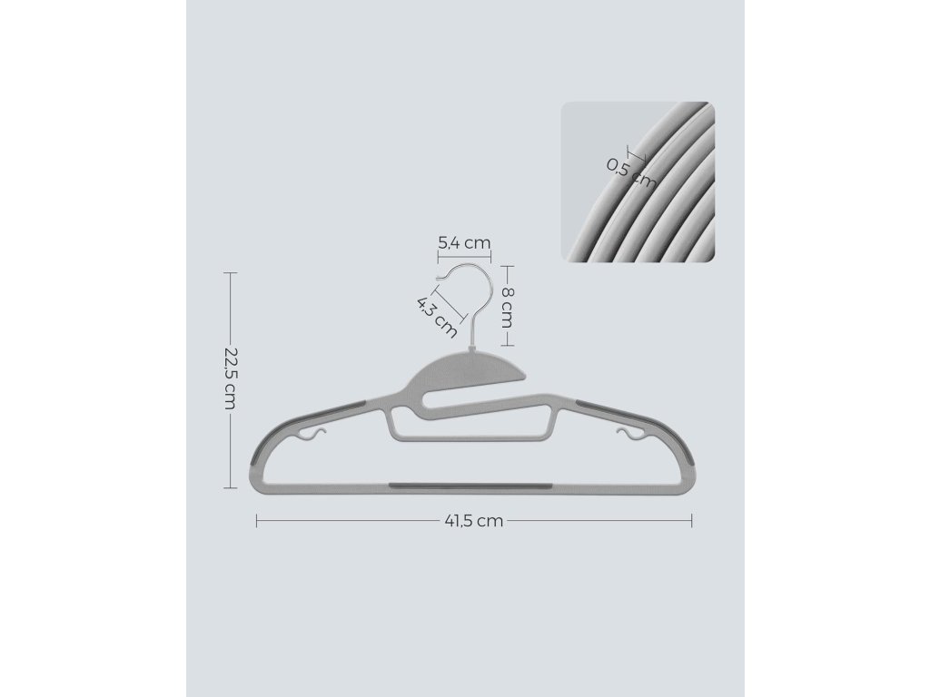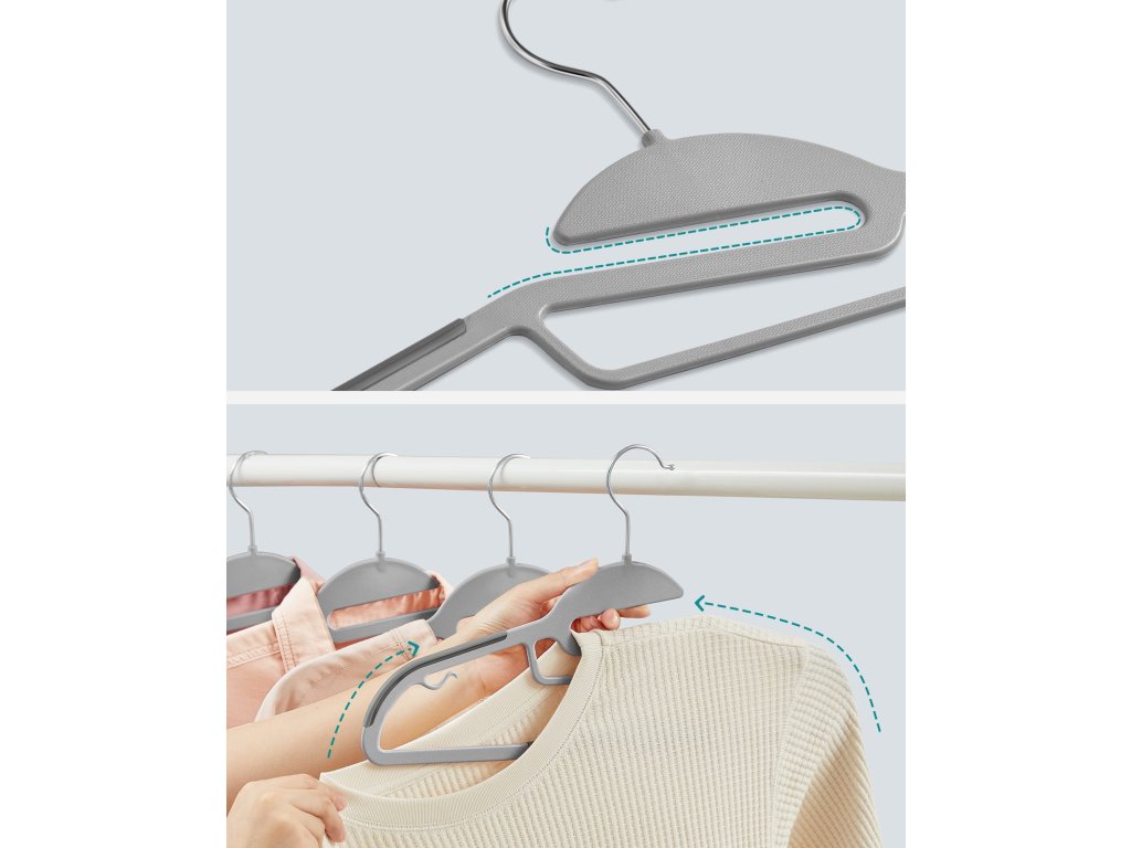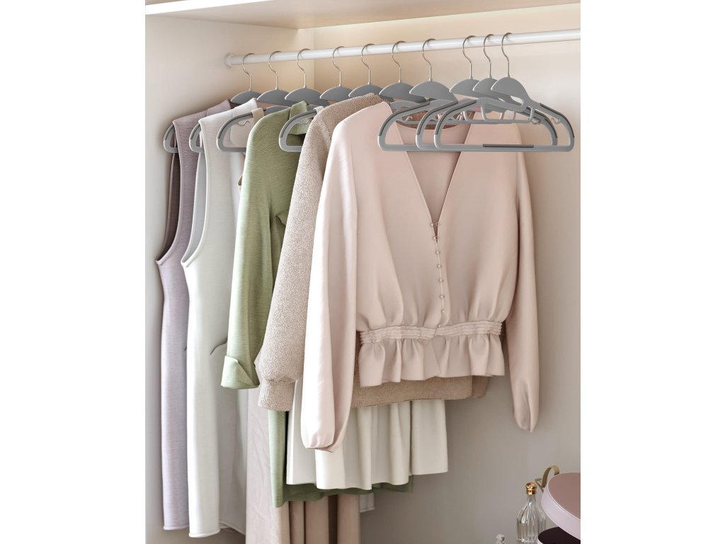 Malé boční háčky umožňují stabilní zavěšení podprsenek a oděvů bez ramínek. Uspořádejte si prostor ve skříni ještě dnes pomocí prezentovaných ramínek.