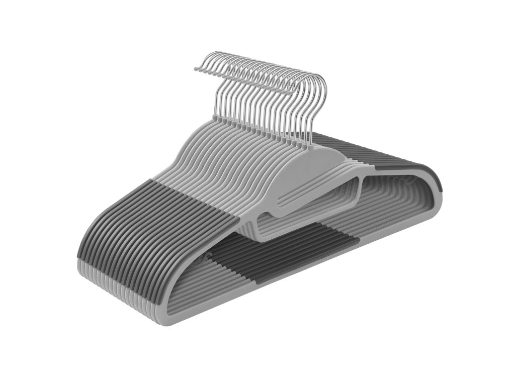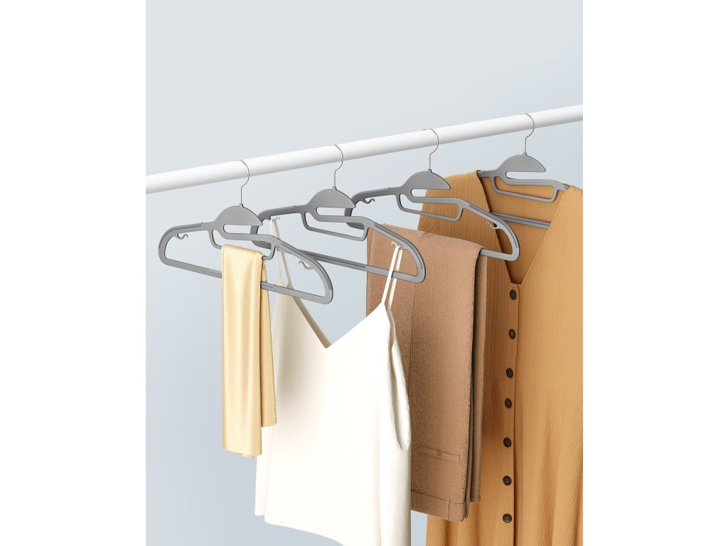 Sada 20 plastových ramínek na šaty je nezbytnou součástí vybavení našich šatníků. Věšáky jsou ideální na kalhoty, košile, kravaty, opasky a těžké obleky a zimní bundy.