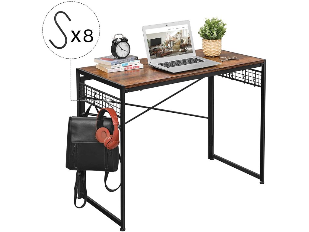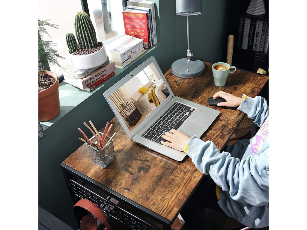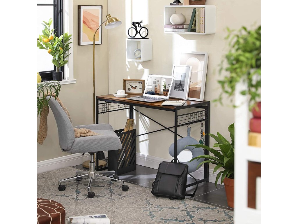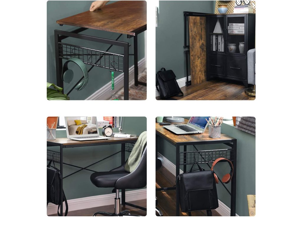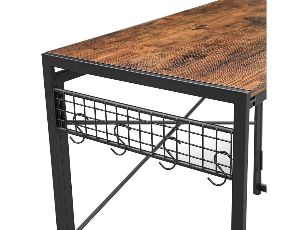 Stůl je vyroben v rustikálním stylu, který je přiměřený věku. Stůl je stabilní, takže na něj můžeme umístit počítač, monitor, sadu reproduktorů nebo notebook, tiskárnu, stolní lampu, knihy a notebooky. Stůl je vybaven 8 háčky, takže budete mít vše potřebné po ruce.