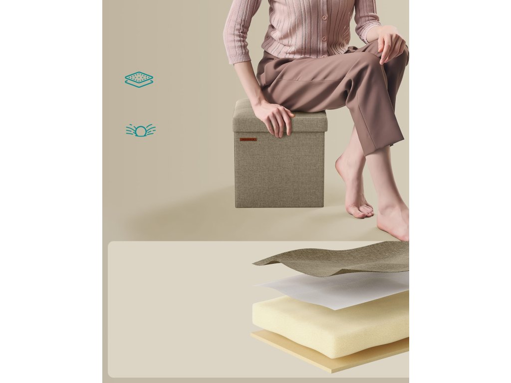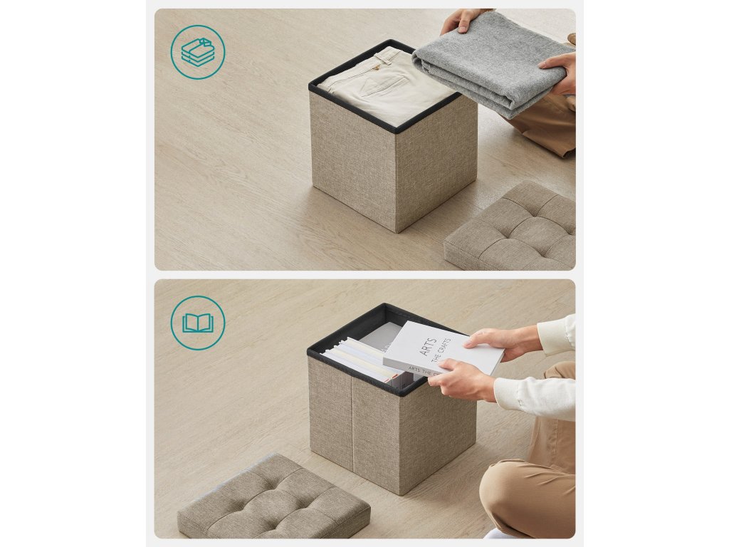 Tento čtvercový kus nábytku, který se vejde do více než jednoho rohu, mámnohostranné využití, a to jako sedadlo, kufr, úložný prostor pro drobné předměty, hračky a jako opěrka nohou.