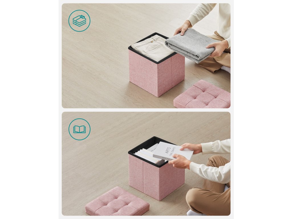 Tento čtvercový kus nábytku, který se vejde do více než jednoho rohu, mámnohostranné využití, a to jako sedadlo, kufr, úložný prostor pro drobné předměty, hračky a jako opěrka nohou.