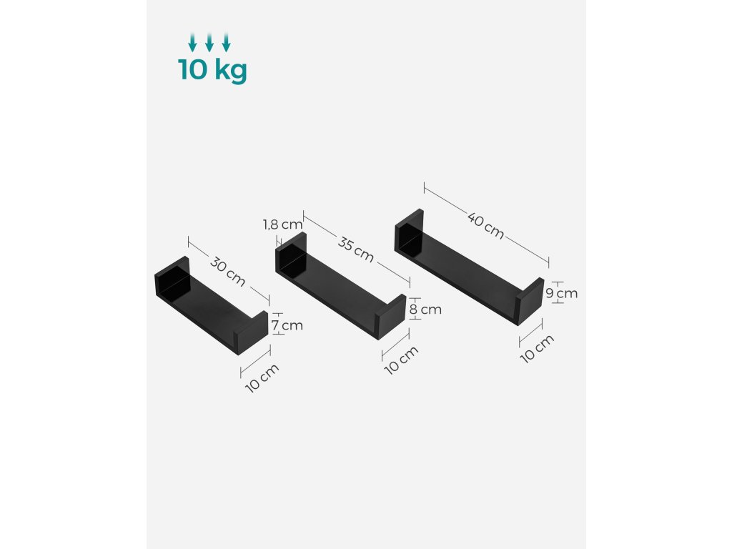SADA 3 ZÁVĚSNÝCH POLIC NA ZEĎ,BLACK