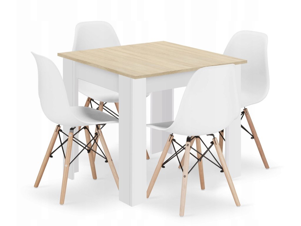 Sada čtvercového stolu 80x80 dub sonoma + 4 židle OSAKA bílá