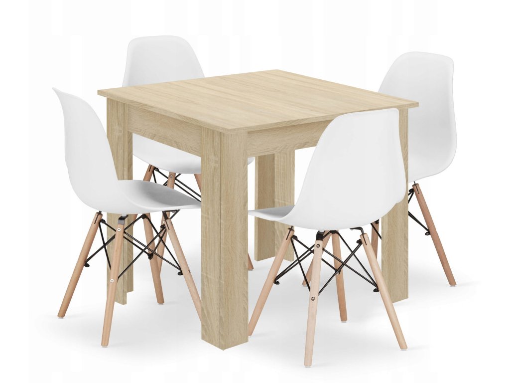 Sada čtvercového stolu 80x80 dub sonoma + 4 židle OSAKA bílá