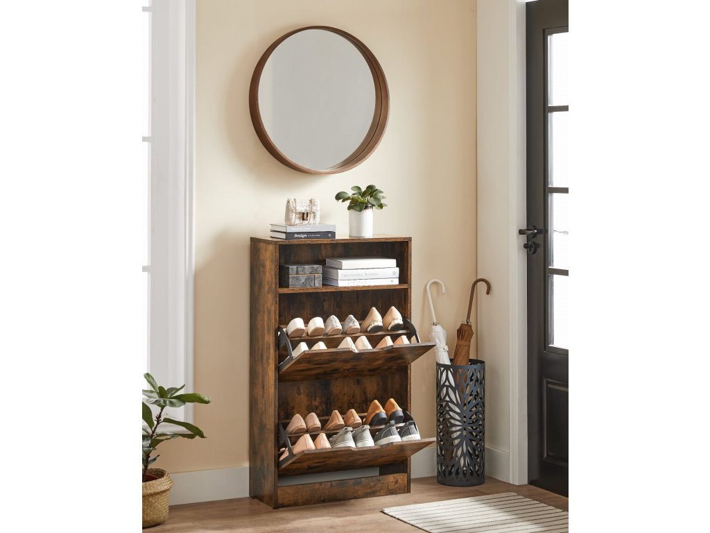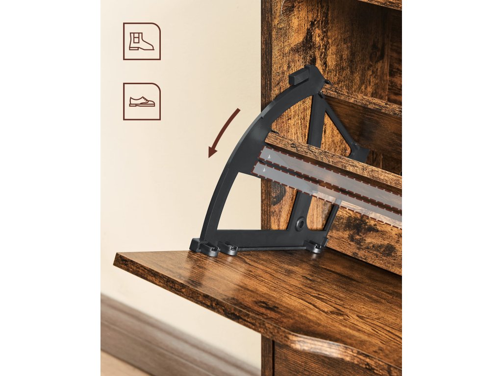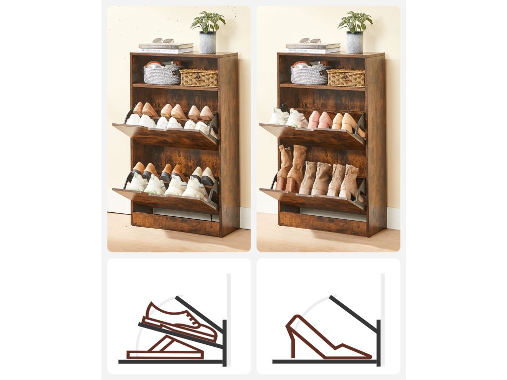 Skříň má 2 otevírací přihrádky s celkem 4 hlubokými policemi na boty, které pojmou až 12 párů bot, a 2 police, kam můžeme umístit naše krásně zarámované fotografie, trofeje nebo dekorativní figurky a květiny v květináčích.