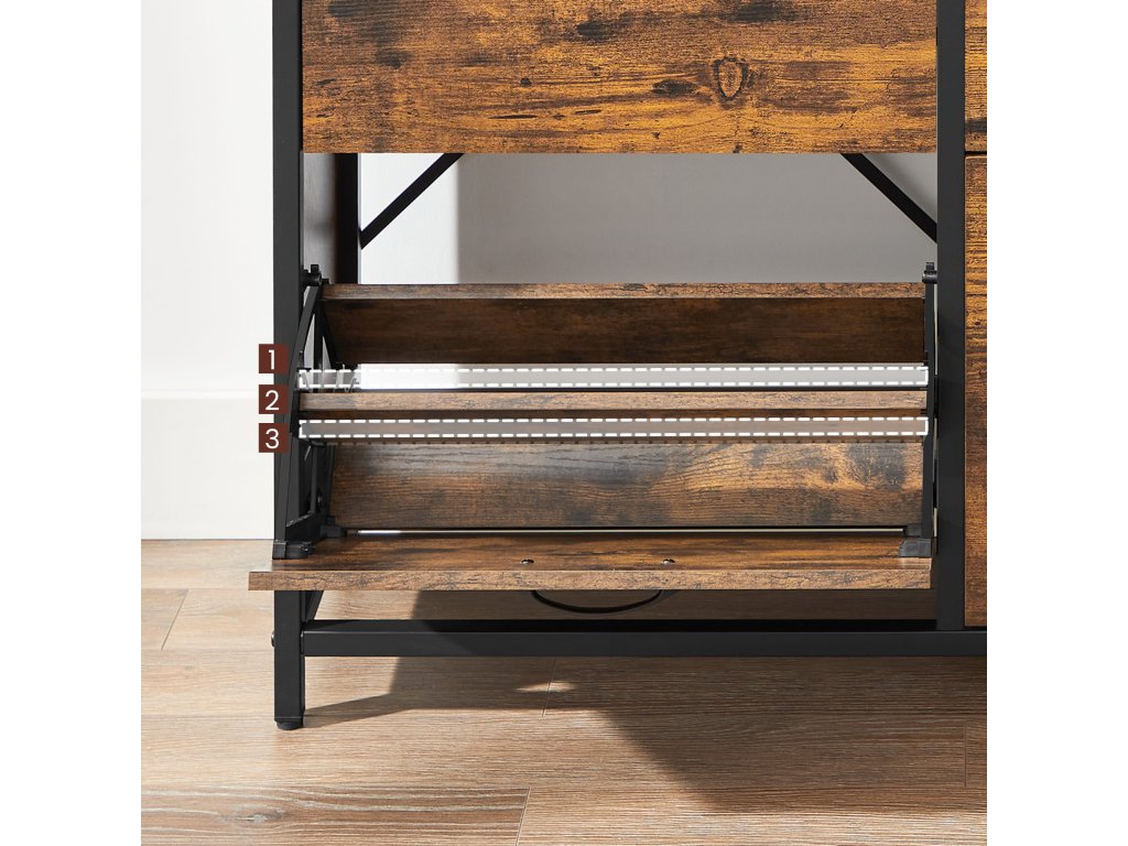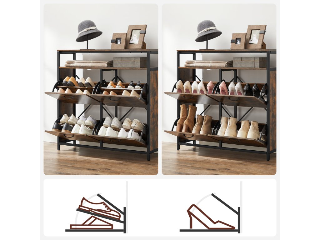 Skříň má 4 otevírací přihrádky s celkem 8 hlubokými policemi na boty, které pojmou až 20 párů bot, a 2 police, kam můžeme umístit krásně zarámované fotografie, trofeje nebo dekorativní figurky a květiny v květináčích.