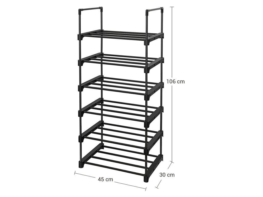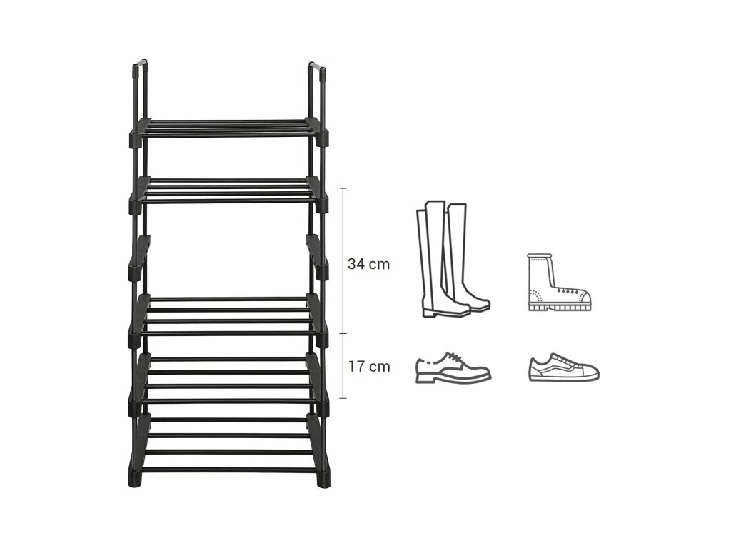 Skříň má 6 polic na boty, do kterých lze uložit až 12 párů bot v závislosti na jejich velikosti.