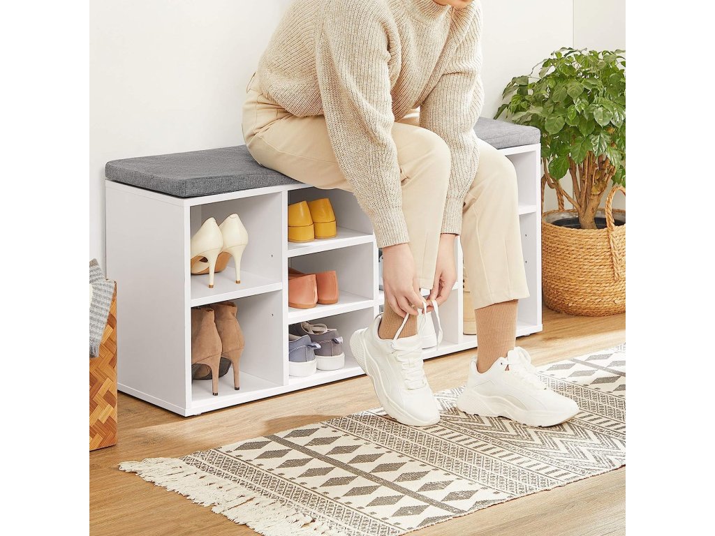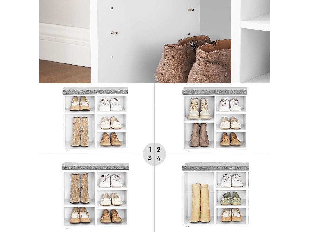 Odnímatelné měkké sedadlo na suchý zip se snadno čistí. Pro ty, kteří nechtějí sedátko používat při obouvání, je zde možnost jej odejmout a využít tento prostor jako další polici.