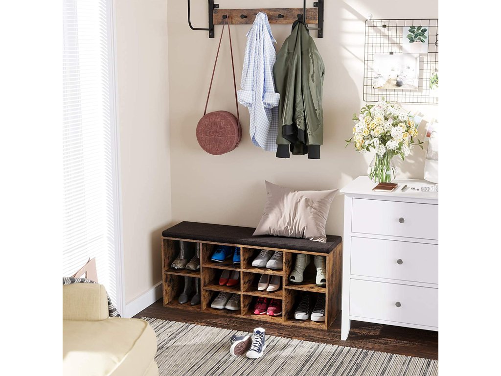 Rustikální botník se sedátkem je velmi praktický a elegantní kus nábytku, který najde své uplatnění v předsíni, chodbě, kanceláři, recepci, hale nebo obchodě.