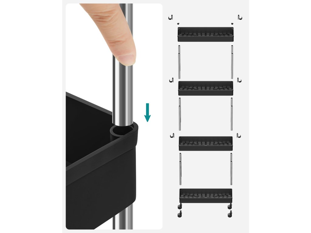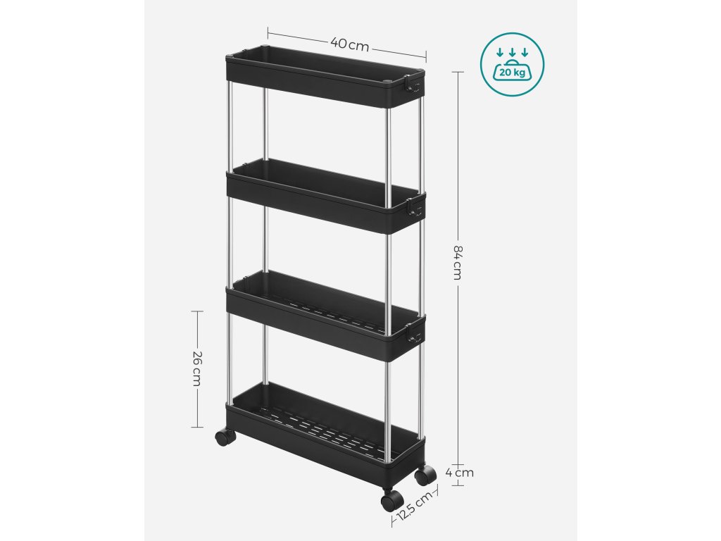 Skříňka na kolečkách 4 police černá - KSC008B01