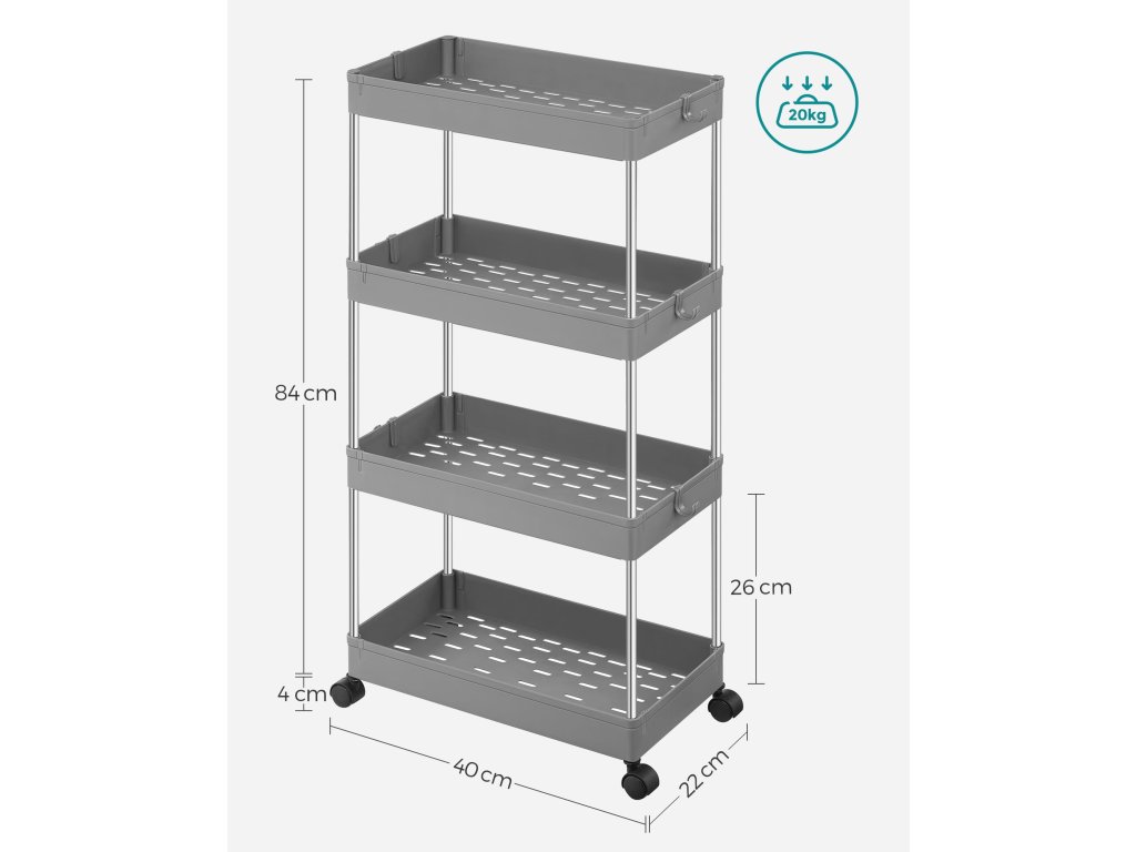 Skříňka na kolečkách 4 police šedá - KSC010G01