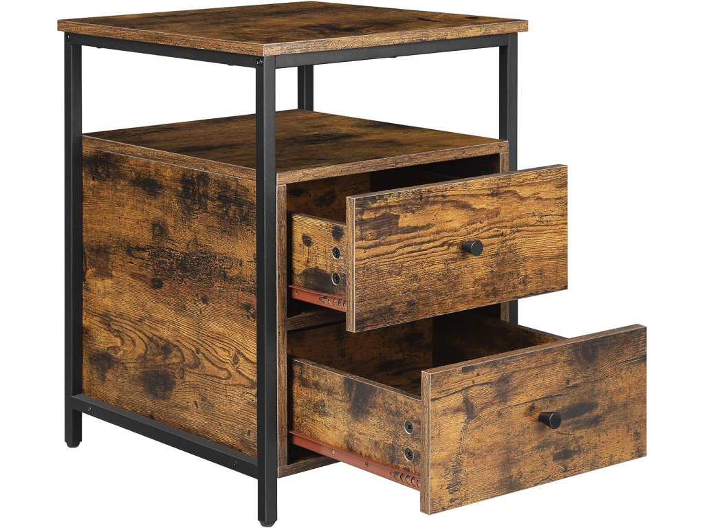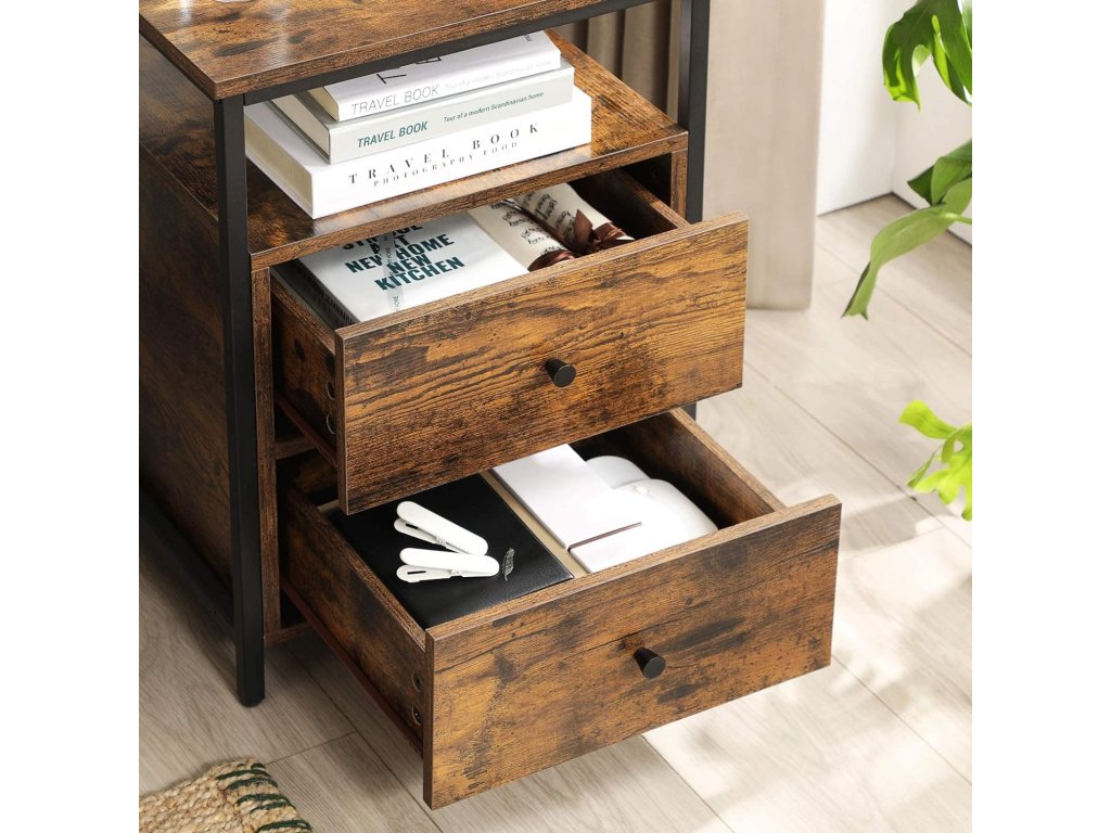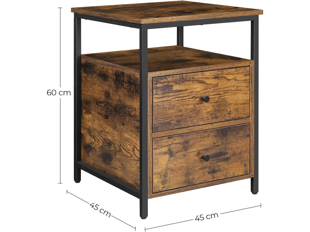 NOČNÍ STOLEK SE ZÁSUVKAMI,RUSTIKÁLNÍ HNĚDÁ BARVA, LOFTOVÝ STYL