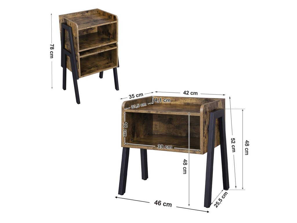 Skříňka je vyrobena v rustikálním stylu, který odpovídá jejímu stáří. Skříňka je stabilní, takže ji můžeme umístit vedle postele a mít na ní všechny věci, které chceme mít po ruce, a to vše díky tomu, že skříňka má i spodní polici. Noční stolek bude ideální pro uložení knih, budíků, květin v květináči, můžeme si na něm také vystavit naše krásně zarámované fotografie.