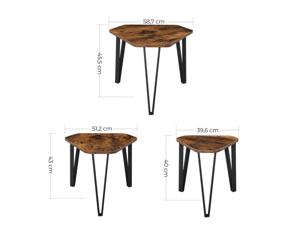 - Rozměry největšího stolu: 58,7 x 51,9 x 45,5 cm (šířka x hloubka x výška)