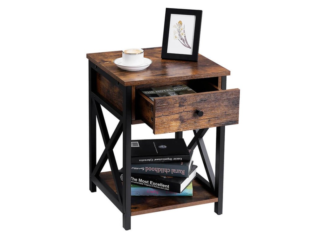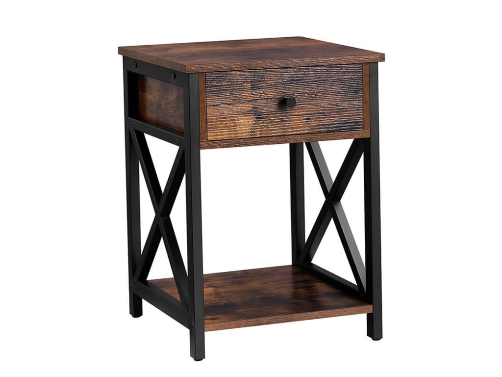 SKŘÍŇ V RUSTIKÁLNÍM STYLU Ideální do obývacího pokoje nebo ložnice Vyrobeno v rustikálním stylu Skříňka má zásuvku Ocelová konstrukce zajišťuje stabilitu nábytku Maximální zatížení skříně: maximální nosnost skříně: 20 kg Výrobek pro vlastní montáž IDEÁLNÍ PRO KAŽDÝ INTERIÉR Skříňka je vyrobena v rustikálním stylu, tj. vhodně stylizovaná tak, aby vypadala staře. Skříňka je stabilní, takže ji můžeme umístit vedle postele a mít v ní všechny věci, které chceme mít po ruce, díky tomu, že skříňka má i spodní polici . Noční stolek bude ideální pro ukládání knih, budíků, květin v květináčích a můžeme si na něj také vystavit naše krásně zarámované fotografie. Další výhodou nočního stolku je , samozřejmě, zásuvka, do které můžeme uložit sluchátka, nabíječku na telefon, poznámky, a dokonce i léky, pokud do místnosti nemají přístup děti. Nejnovějším trendem je nábytek v loftovém stylu. Skříňka jistě zapadne do interiéru mnoha místností . Doporučujeme ji také do obývacího pokoje. DOBŘE NAVRŽENÉ Ocelová konstrukce zajišťuje stabilitu nábytku. Dokonale osazené prvky rámu a rustikální police a zásuvky dodají vašemu interiéru šarm . Postarejte se o estetiku svého pokoje, ložnice nebo obývacího pokoje výběrem osvědčených výrobků nejvyšší kvality. SPECIFIKACE Barva: rustikální hnědá, černá Materiál: dřevotříska, ocel Rozměry: 40 x 40 x 57 cm (šířka x hloubka x výška) Max. zatížení skříně: 20 kgDoplňkové parametry